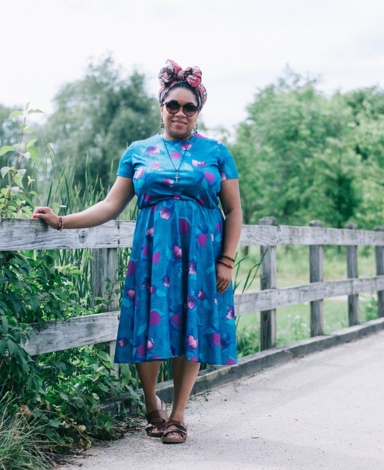 I bought this vintage blue floral dress at a Goodwill in Tennessee. Vintage is one of the styles I look for when I go thrift store shopping.